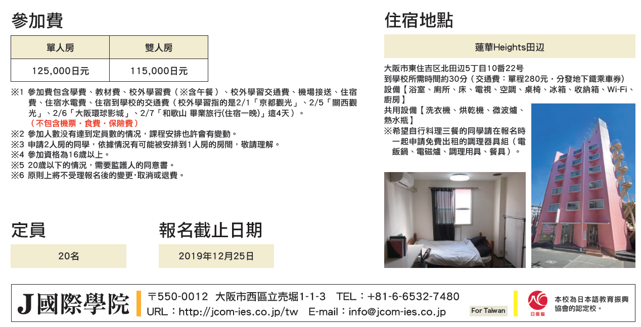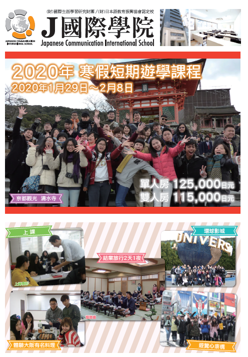 大阪J國際學院公布了2020年冬季短期遊學課程!!